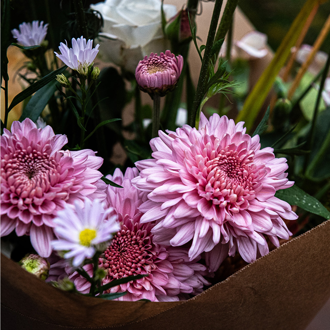 Elke week stellen we een uniek boeket samen met seizoensbloemen van het moment. Geen boeket is hetzelfde, en toch altijd in onze herkenbare stijl.